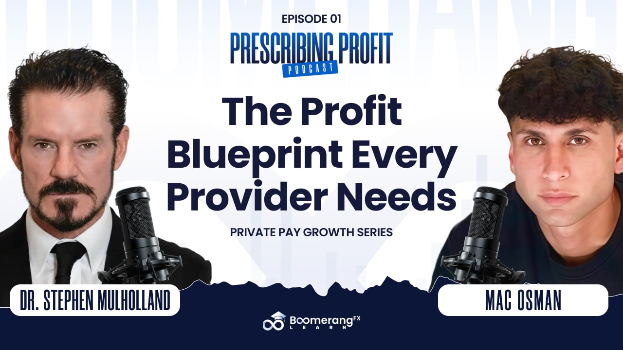 Hosted by Dr. Stephen Mulholland, founder of BoomerangFX and InMode, Prescribing Profit helps med spa owners and private-pay providers scale smarter and build lasting profitability.